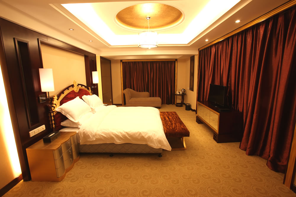 【豪華客房】(3—16 樓)):擁有各類豪華客房共380間/套,其中頂樓為皇室套房,有空中花園,可遠觀天門山景區(qū)。