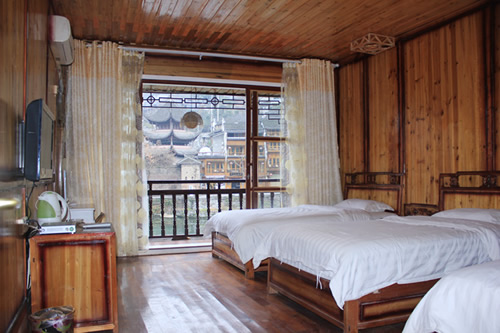 古樸的客房內(nèi),超大陽臺全景落地窗,是您欣賞沱江風(fēng)光帶首選客棧,兩座百年四合院內(nèi)小橋流水,假山錦鯉,一百三十平米休閑花園別具情調(diào)。紅酒加咖啡的大堂吧、彩色精致的情調(diào)房、古典高雅的臨江觀景房以及大型公共觀景平臺,龍閣的點(diǎn)點(diǎn)滴滴都透著出古城的神韻和幽靜,走進(jìn)龍閣客棧,給您一個(gè)完美的鳳凰古城沱江全景!