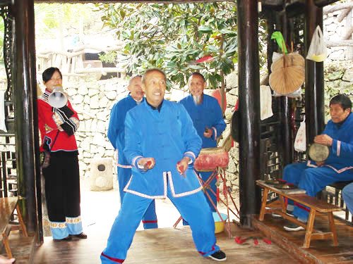 | 每年的正月初一到正月十五,藝人們結(jié)伴走村串寨拜年,表現(xiàn)對(duì)象不分貧富,戶戶必到。如遇貧寒之家,表演者將別家贈(zèng)送的禮品相送,意在人人過節(jié)歡喜。充分體現(xiàn)出土家人熱情好客,心地善良的民族性格。對(duì)加強(qiáng)民族間團(tuán)結(jié)有一定的作用。