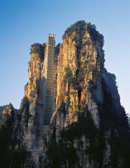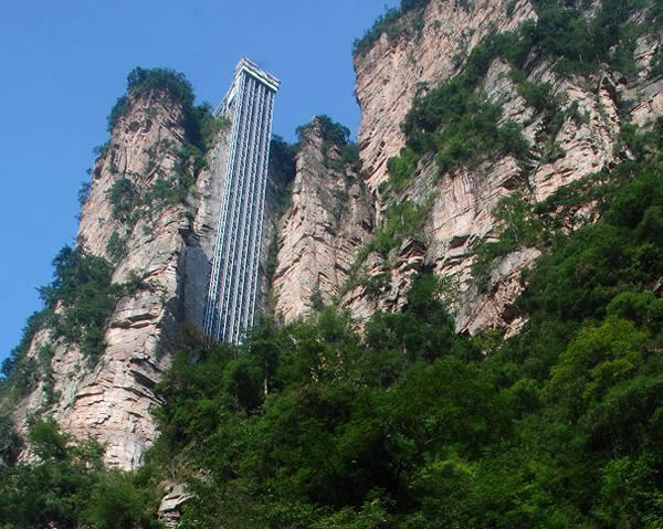 | 百龍?zhí)焯菀挥谑澜缱匀贿z產張家界武陵源風景名勝區(qū),1999年9月動工,2002年4月投入營運,電梯的主要設備由德國知名電梯公司研究生產,耗資人民幣1.8億元,被譽為“世界上最高、運行速度最快、載重量最大的電梯”,也因此被載入吉尼斯世界紀錄。