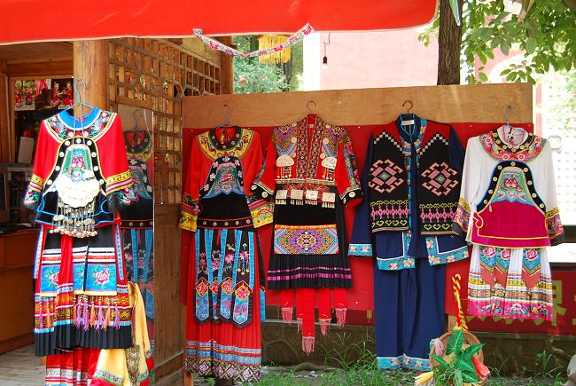 土家族服飾 比較而言,土家族服飾沒有苗族那樣穿金戴銀,更接近生活型、實用型。民國以來,土家男女一年四季都戴頭巾,男人以青、藍、白或條紋布為主,長二三米,一圈圈地纏繞在頭上,包成人字路;女人則多為青絲帕或自印花頭巾,絲帕薄如蟬翼,最長達七、米,是婦女終生陪伴之物,死后必以帕縫頭入葬。衣服以青、藍、白、印花布為主,男穿對胸衣,雙排七至十一扣,俗稱蜈蚣扣,袖口、領口及褲管末端加花邊;女人則右開襟,袖大而短,飾花邊,掛銀銅佩飾,俗稱“滿襟”,有滿清道風:未出閣少女著花衣,講究大紅大綠;小孩喜戴菩薩帽,虎頭帽;男鞋多為青藍布,女人穿繡鞋:姑娘出嫁時必穿“露水衣”,上著鮮艷桃花繡衣,下著八幅羅裙,與土老司八幅羅裙有異曲同工之妙。據(jù)大文豪沈從文考證,八幅羅裙是正宗土家裝。過去土家男女不穿襪,興打綁腿,尤男子將褲簡裹成人字路,配布鞋或草鞋,十分精神利索,民族專家說這是土家兵戰(zhàn)爭裝束,有土司“兵農(nóng)合一”傳統(tǒng)制度的痕跡。而民間百匠,又有不同職業(yè)裝,如鐵匠穿長而寬的牛皮肚兜以防灼傷;獵戶掛繡花子彈肚兜是實戰(zhàn)需要;農(nóng)民雨天下田批蓑衣則是農(nóng)事需要。對那些“命相”不佳的小孩,還要按土老司的指點戴“百家鎖”、穿百納衣,即從一百戶人家討一百塊碎布拼做成衣服穿,否則難養(yǎng)成人等等。故外人說:土家人穿了一身的“講究”。 |