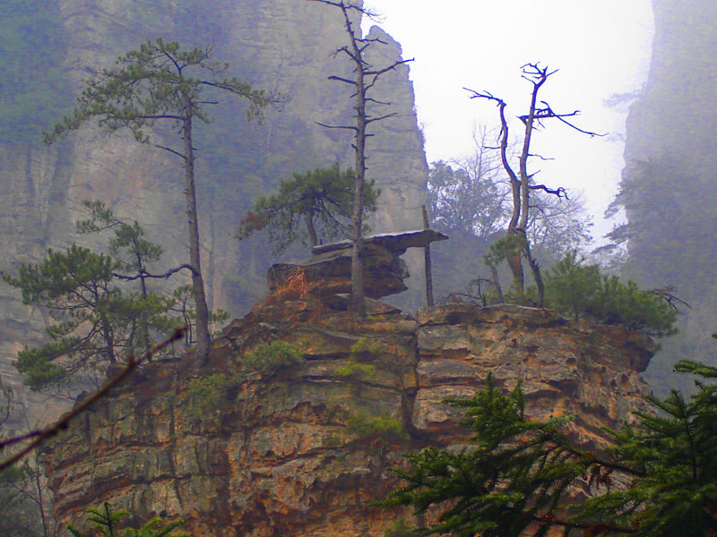在整個武陵源風(fēng)景名勝區(qū),類似“天書寶匣”這種形態(tài)各一的景觀比比皆是。因此,您盡可以發(fā)揮各自的想像力,給它們?nèi) 獋有意思的名字。