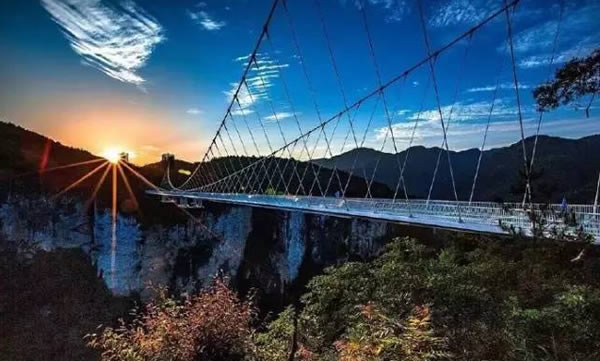 上 午: 遠觀霧色百丈峽、踏入神秘的潘多拉世界,游覽張家界核心景區(qū)(門票已含)精品游覽線——【袁家界景區(qū)】(乘百龍?zhí)焯萆闲,門票72元/人已含):袁家界風景以雄、奇、險、峻著稱,在十多華里的環(huán)山游道上,沿途景色美不勝數(shù),其中可觀賞到:電影《阿凡達》中“哈利路亞山”原型“乾坤柱”、迄今為止發(fā)現(xiàn)落差最高的天然石橋——天下第一橋(橋墩絕對高度354米)、九天玄梯、八卦圖、猿人望月、拜仙臺、迷魂臺、后花園等景點;乘景區(qū)環(huán)保車(約40分鐘)前往游覽峰林奇觀--【天子山】:天子山被譽為峰林之王,千座山峰兀立云霧中、風光旖旎、景色秀美,游覽天子閣、西海石林、御筆峰、仙女獻花、賀龍公園、石船出海、賀龍銅像等景點。