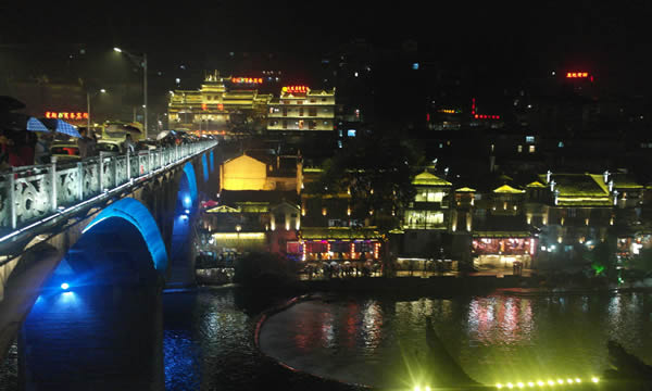 鳳凰古城是國家歷史文化名城,曾被新西蘭著名作家路易艾黎稱贊為中國最美麗的小城。這里與吉首的德夯苗寨,永順的猛洞河,貴州的梵凈山相毗鄰,是懷化、吉首、貴州銅仁三地之間的必經(jīng)之路。作為一座國家歷史文化名城,鳳凰的風(fēng)景將自然的、人文的特質(zhì)有機(jī)融合到一處,透視后的沉重感也許正是其吸引八方游人的魅力之精髓。這座曾被新西蘭作家路易艾黎稱作中國最美麗的小城之一的“鳳凰古城”建于清康熙時(shí),這顆“湘西明珠”是名副其實(shí)的“小”,小到城內(nèi)僅有一條像樣的東西大街,可它卻是一條綠色長廊。